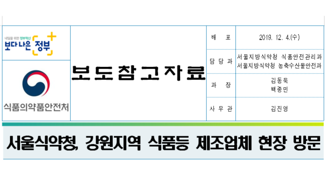서울식약청, 강원지역 식품등 제조업체 현장 방문