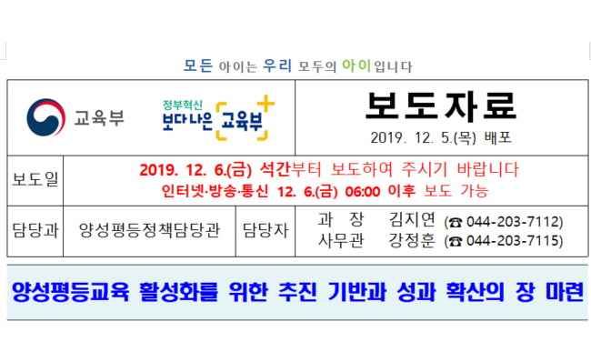 양성평등교육 활성화를 위한 추진 기반과 성과 확산의 장 마련