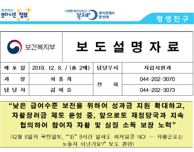 [12월 6일, 국민일보] 자활근로 보도 관련