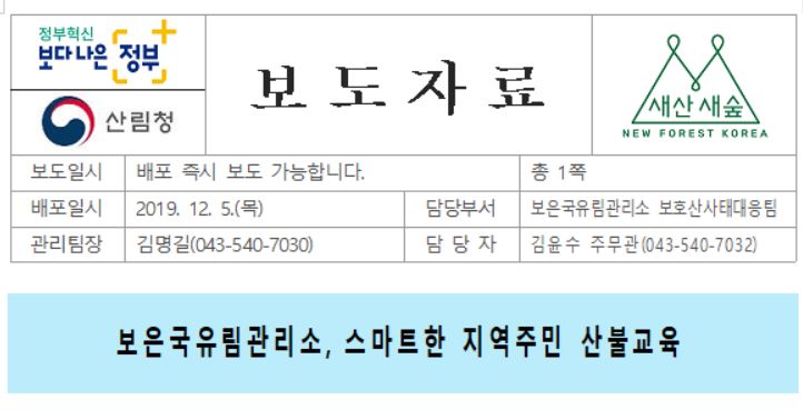 보은국유림관리소, 스마트한 지역주민 산불교육