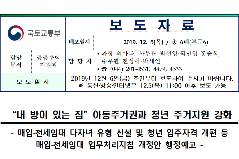 “내 방이 있는 집” 아동주거권과 청년 주거지원 강화