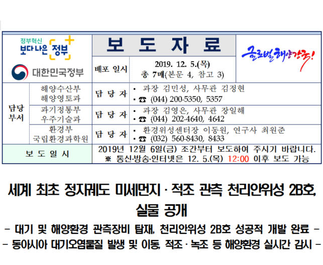 세계 최초 정지궤도 미세먼지·적조 관측 천리안위성 2B호, 실물 공개