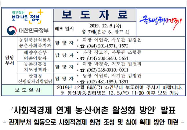 ‘사회적경제 연계 농·산·어촌 활성화 방안‘ 발표