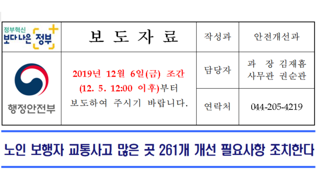 노인 보행자 교통사고 많은 곳 261개 개선 필요사항 조치한다