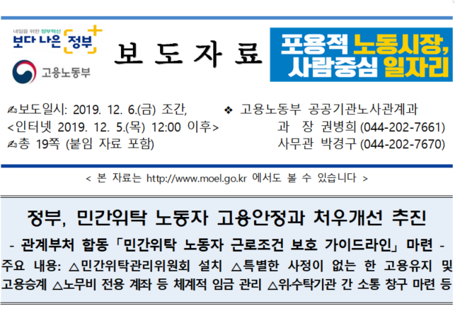 정부, 민간위탁 노동자 고용안정과 처우개선 추진
