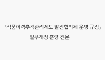 「식품이력추적관리제도 발전협의체 운영 규정」 일부개정 훈령 전문