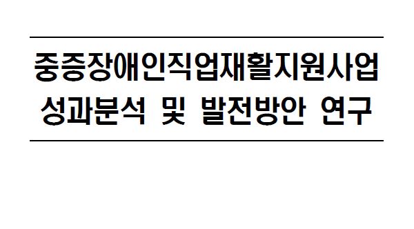 [2019]중증장애인직업재활지원사업 성과분석 및 발전방안 연구