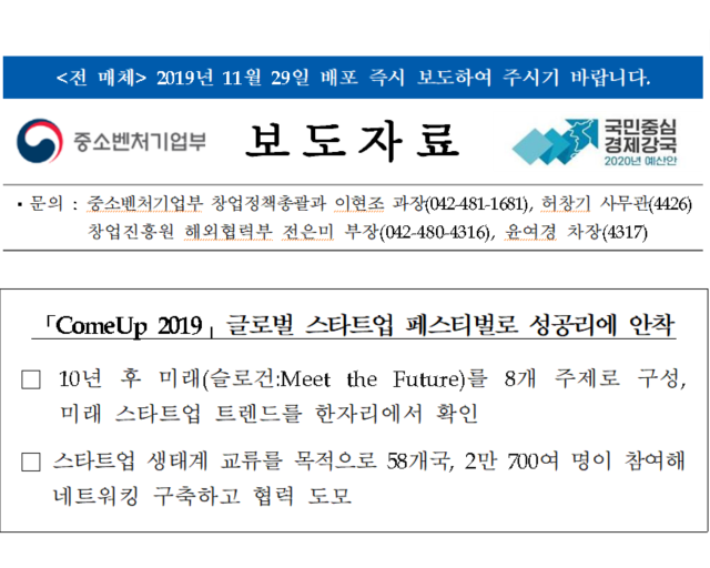 「ComeUp 2019」글로벌 스타트업 페스티벌로 성공리에 안착
