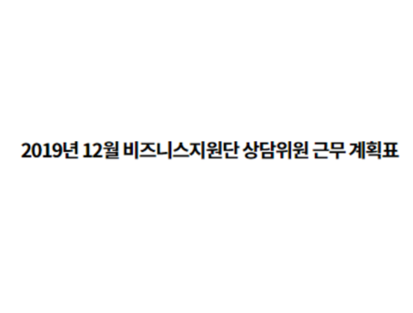 2019년 12월 비즈니스지원단 상담위원 근무 계획표