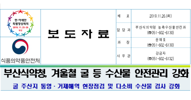 [보도자료]부산식약청, 겨울철 굴 등 수산물 안전관리 강화