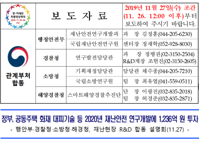 정부, 공동주택 화재 대피기술 등 2020년 재난안전 연구개발에 1,236억 ...
