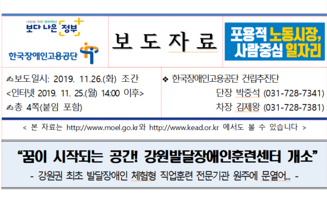 “꿈이 시작되는 공간! 강원발달장애인훈련센터 개소”