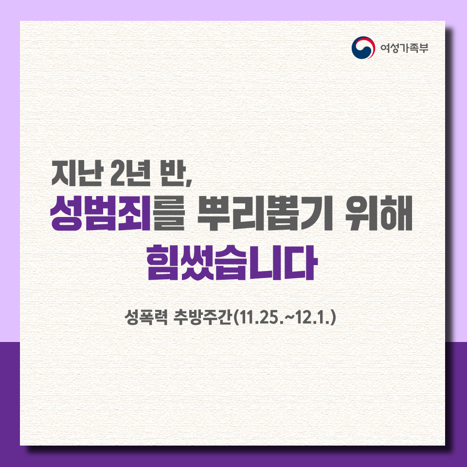 지난 2년 반, 성범죄를 뿌리뽑기 위해 힘썼습니다.