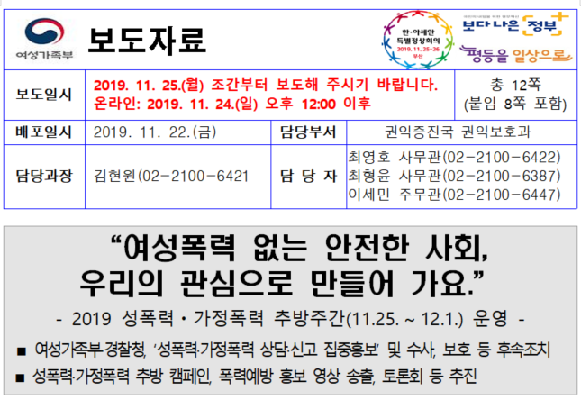 여성폭력 없는 안전한 사회, 우리의 관심으로 만들어 가요