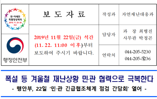 폭설 등 겨울철 재난상황 민․관 협력으로 극복한다