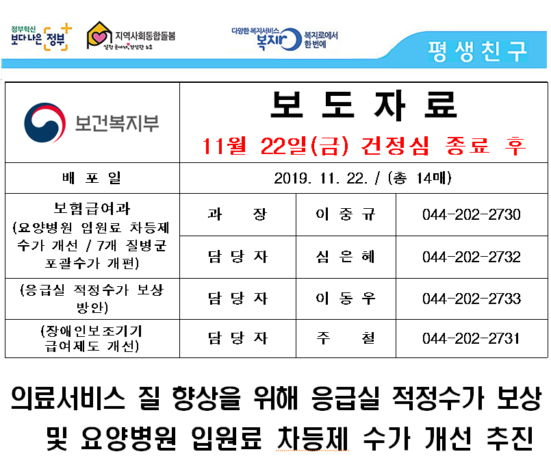 의료서비스 질 향상을 위해 응급실 적정수가 보상 및 요양병원 입원료 차등제 수...