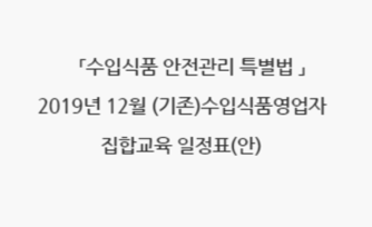 「수입식품 안전관리 특별법 」 2019년 12월 (기존)수입식품영업자 집합교육...