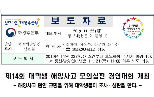 제14회 대학생 해양사고 모의심판 경연대회 개최