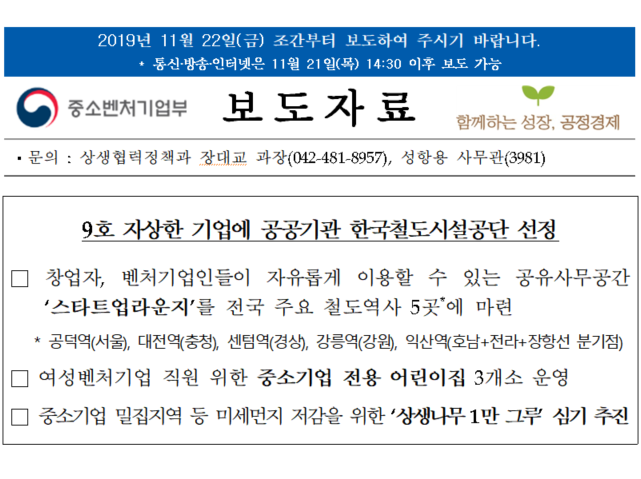 9호 자상한 기업에 공공기관 한국철도시설공단 선정
