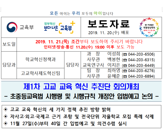 학교폭력 대응절차 개선방안 추진을 위한 입법예고 실시