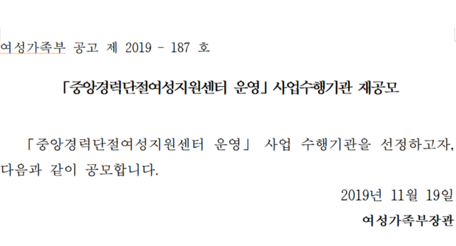「중앙경력단절여성지원센터 운영」 사업수행기관 재공모