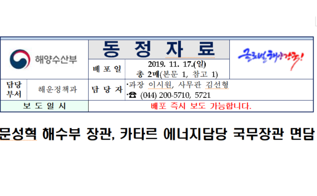 (동정)문성혁 해수부 장관, 카타르 에너지담당 국무장관 면담